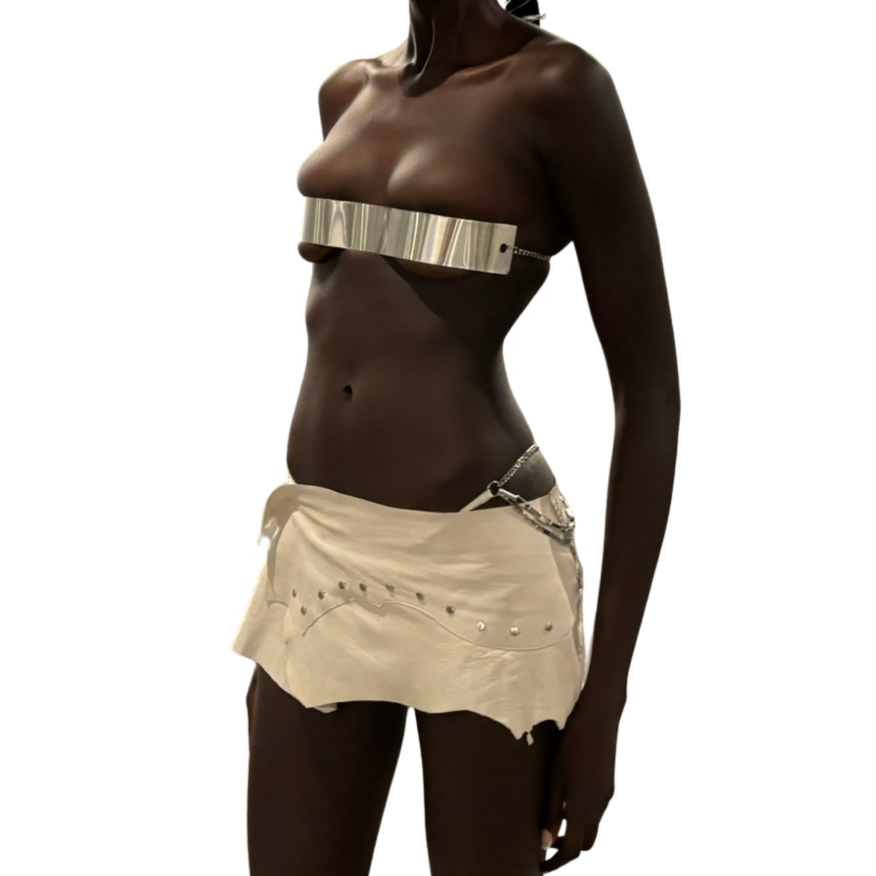 Break necks with the PerceptionF Handmade Metal chestplate, a sleek, minimalist design blending futuristic cyber aesthetics with luxury craftsmanship.